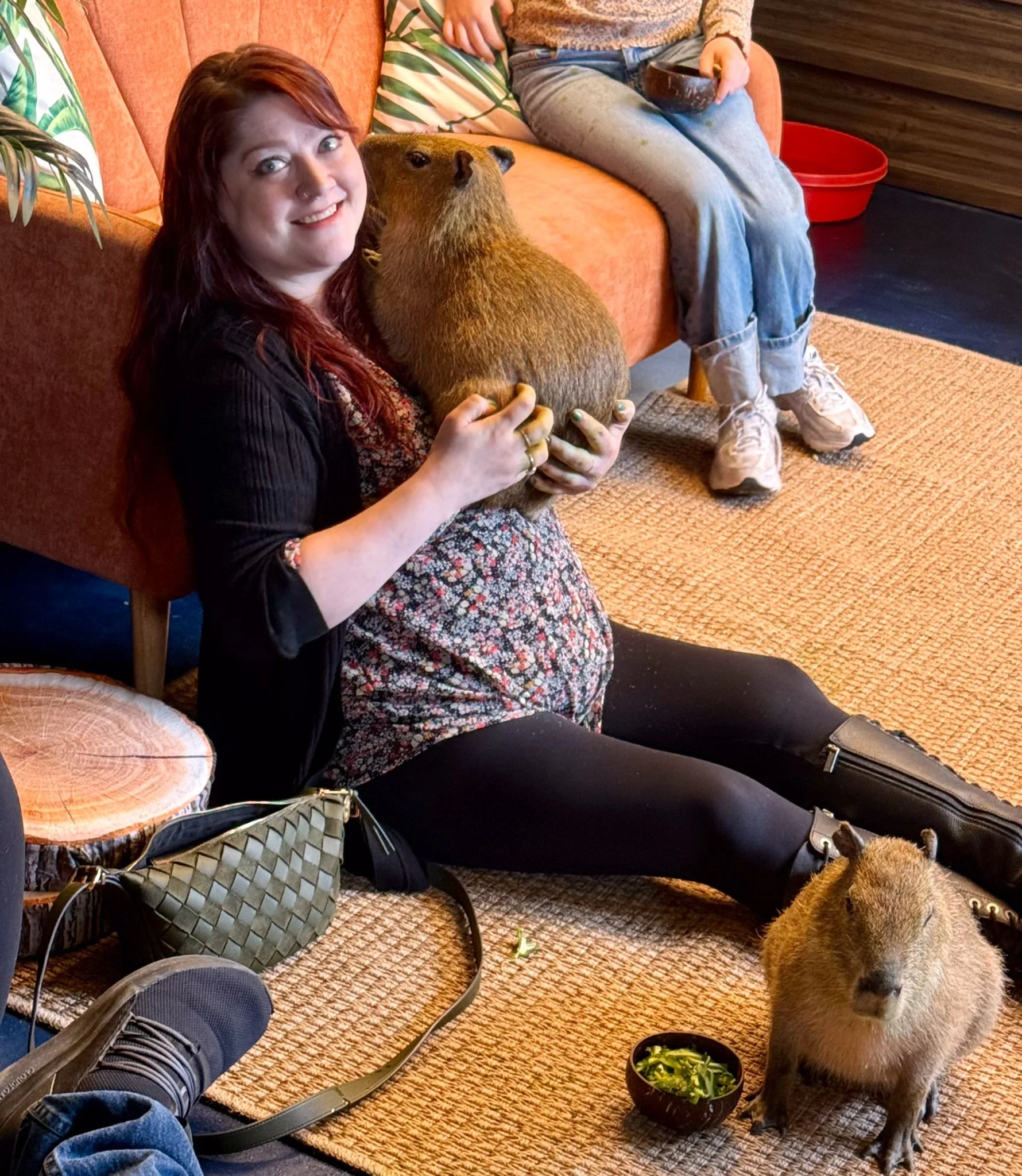 Some visits are very hands-on, capybaras may come right up to you, sit beside you, or even climb into your lap. Other times, they may prefer to relax and be observed from a distance. We follow their lead to ensure they feel safe and comfortable at all times.